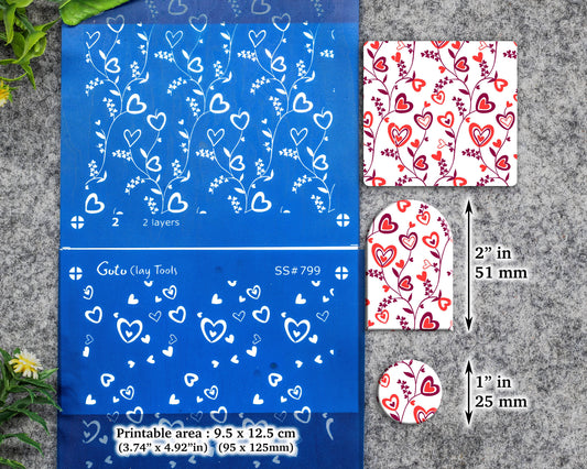 2 Layers Heart vine Silkscreen for Polymer Clay Earring making, Clay Stencils, Clay Earring Silkscreen, Polymer Clay Supplies SS#799