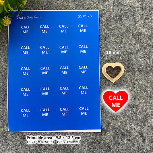 CALL ME Silkscreen with heart cutter for Polymer Clay Earring making, Clay Stencils, Clay Earring Silkscreen, Polymer Clay Supplies SS#978