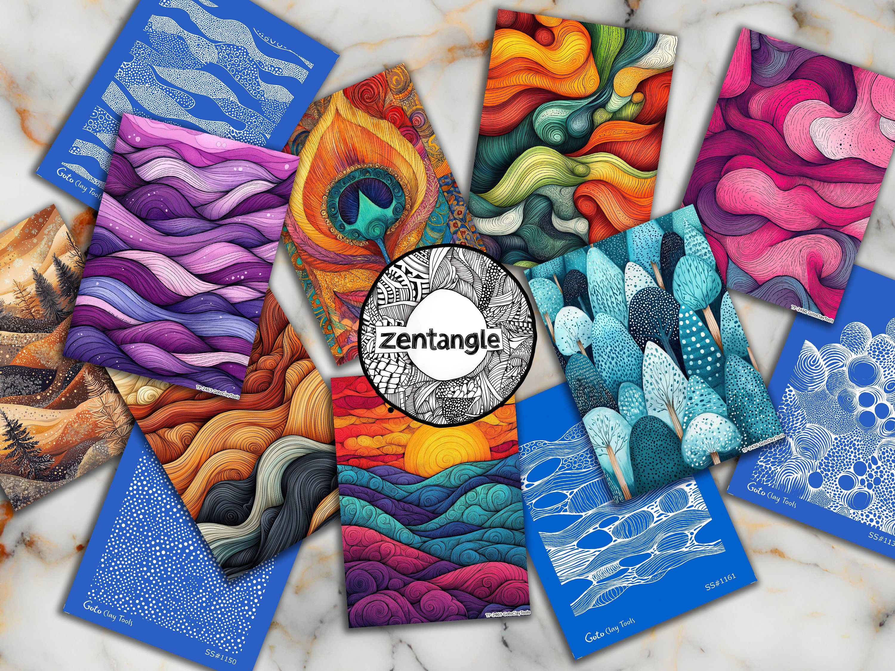 Zentangle Silk screens for Polymer Clay, Clay Stencils, Polymer Clay Silkscreens, Silk screens for Clay, Polymer Clay Silk screens R1SS7