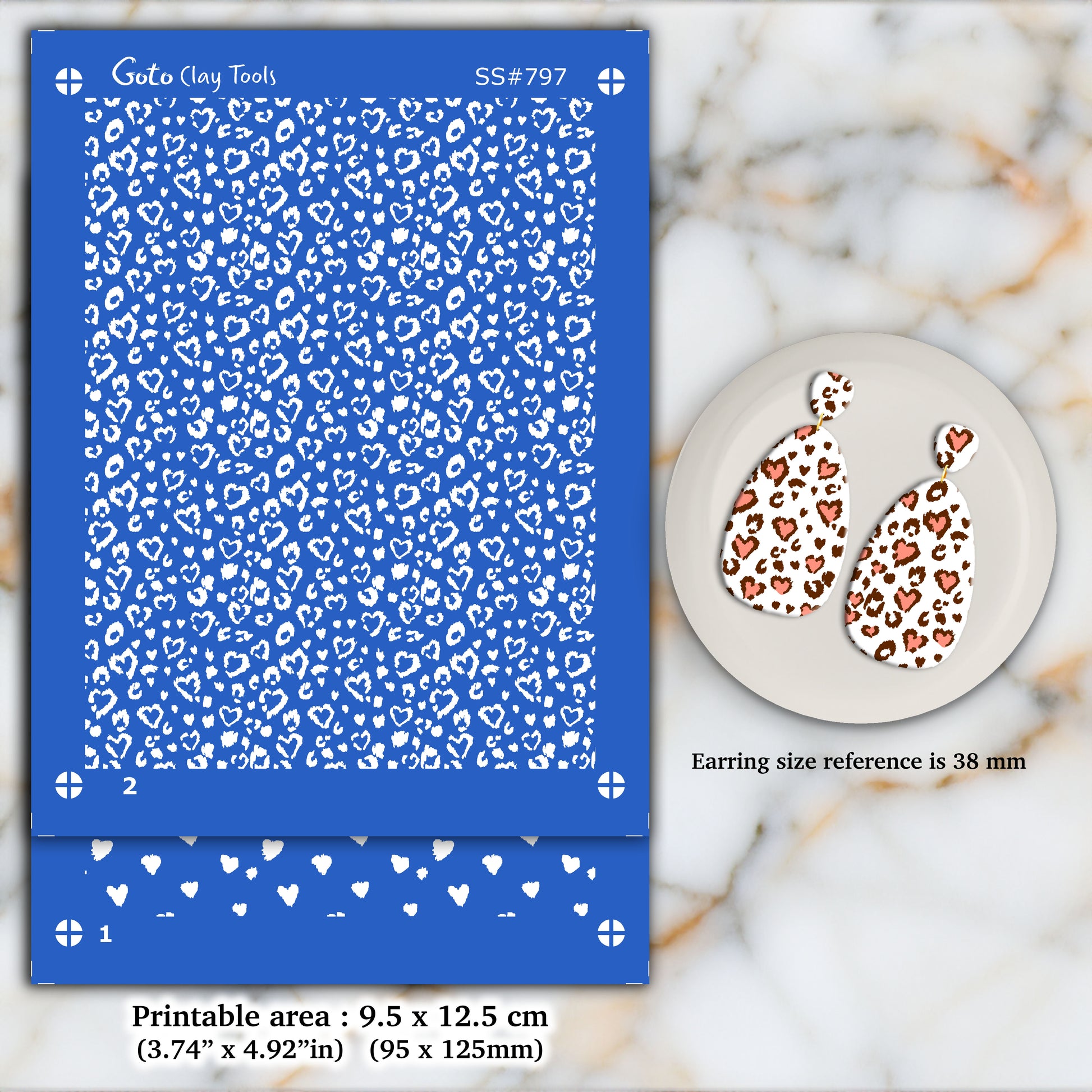 2 Layers Heart Leopard Silkscreen for Polymer Clay Earring making, Clay Stencils, Clay Earring Silkscreen, Polymer Clay Supplies SS#797