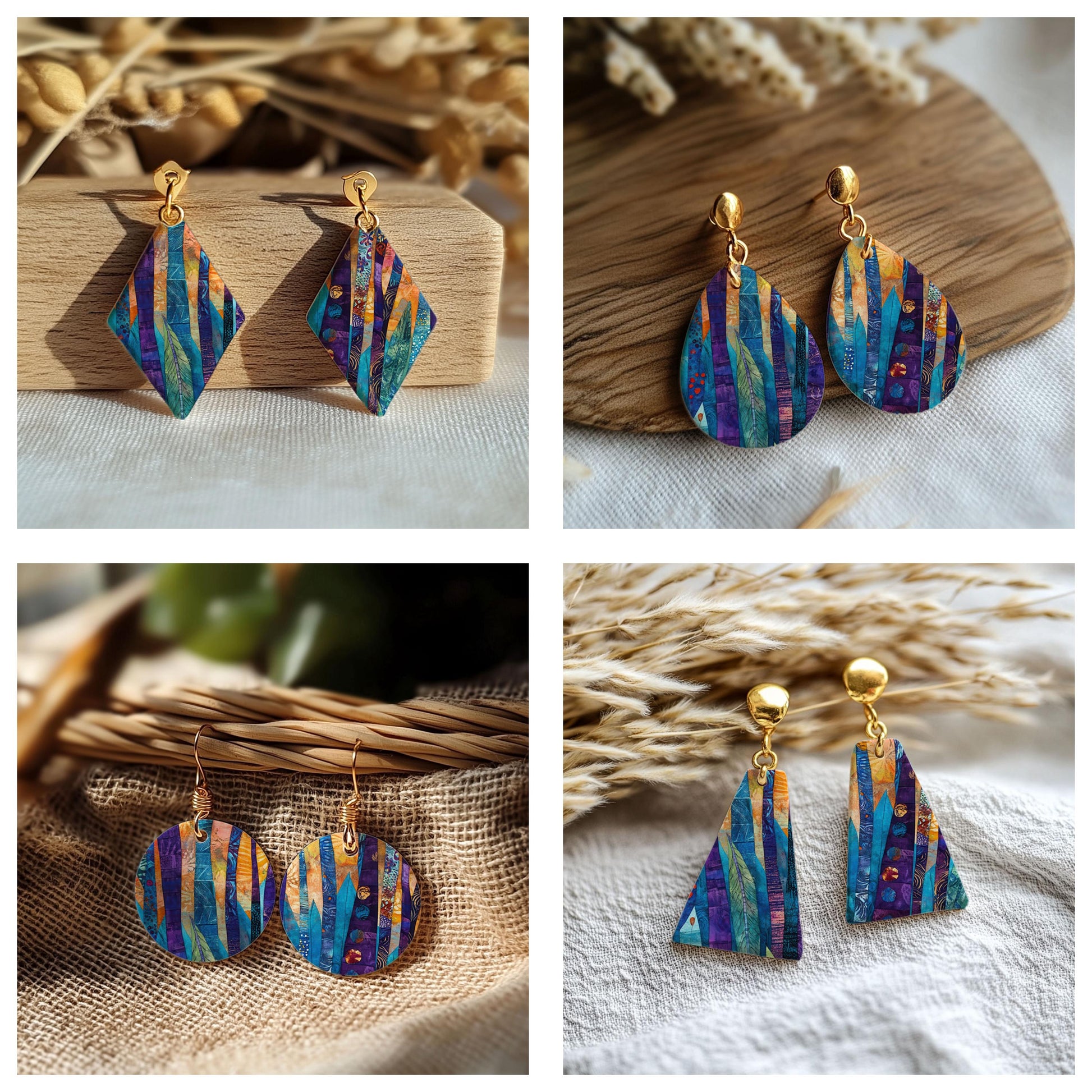 Colorful Birch Quilt Transfer paper for polymer Clay Earring Making - Water Soluble Transfer Sheet 4x5.5 in #TP26-4