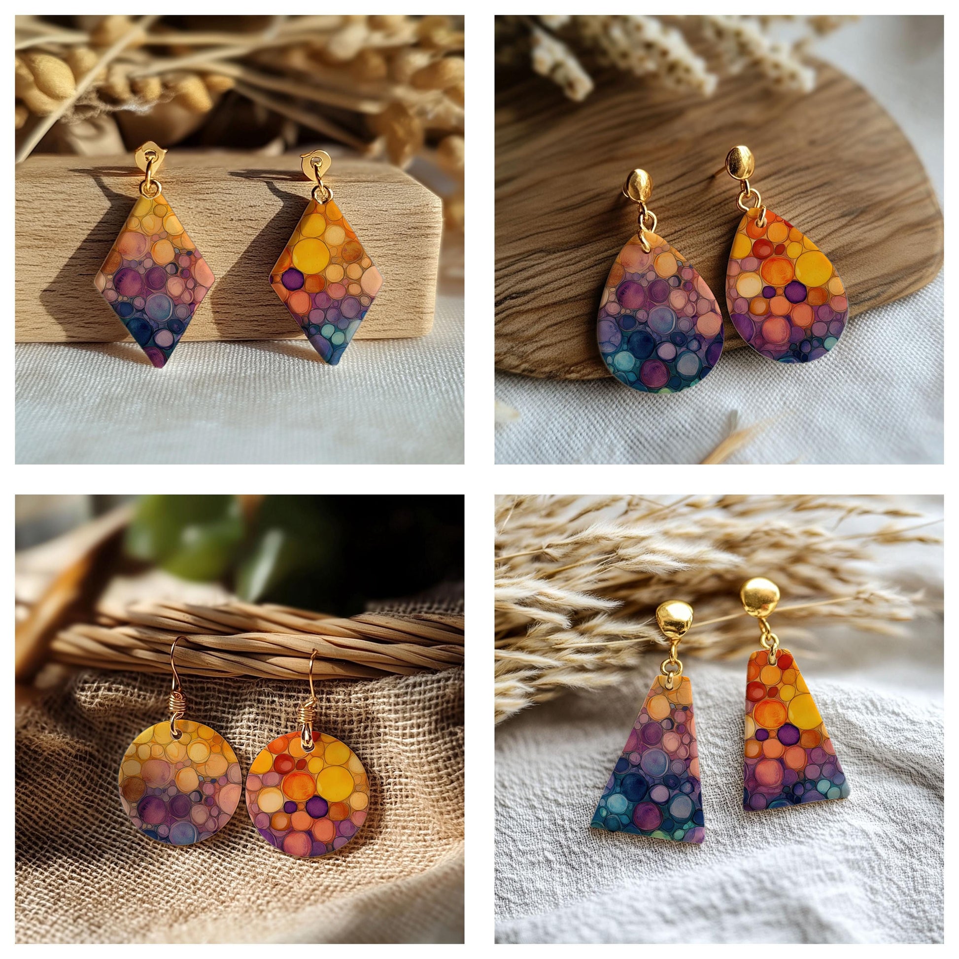Colorful bubbles Transfer paper for polymer Clay Earring Making - Water Soluble Transfer Sheet 4x5.5 in #TP26-11