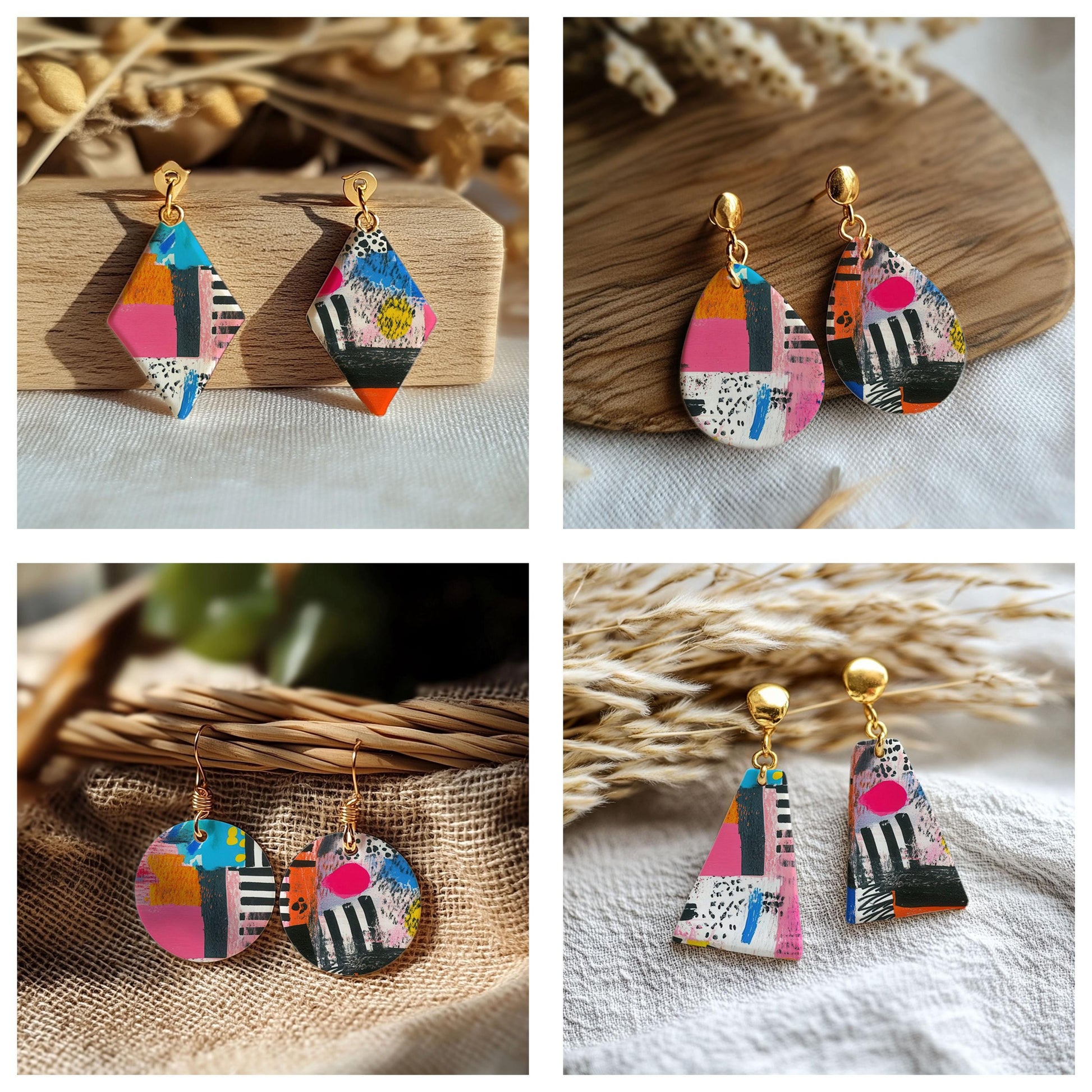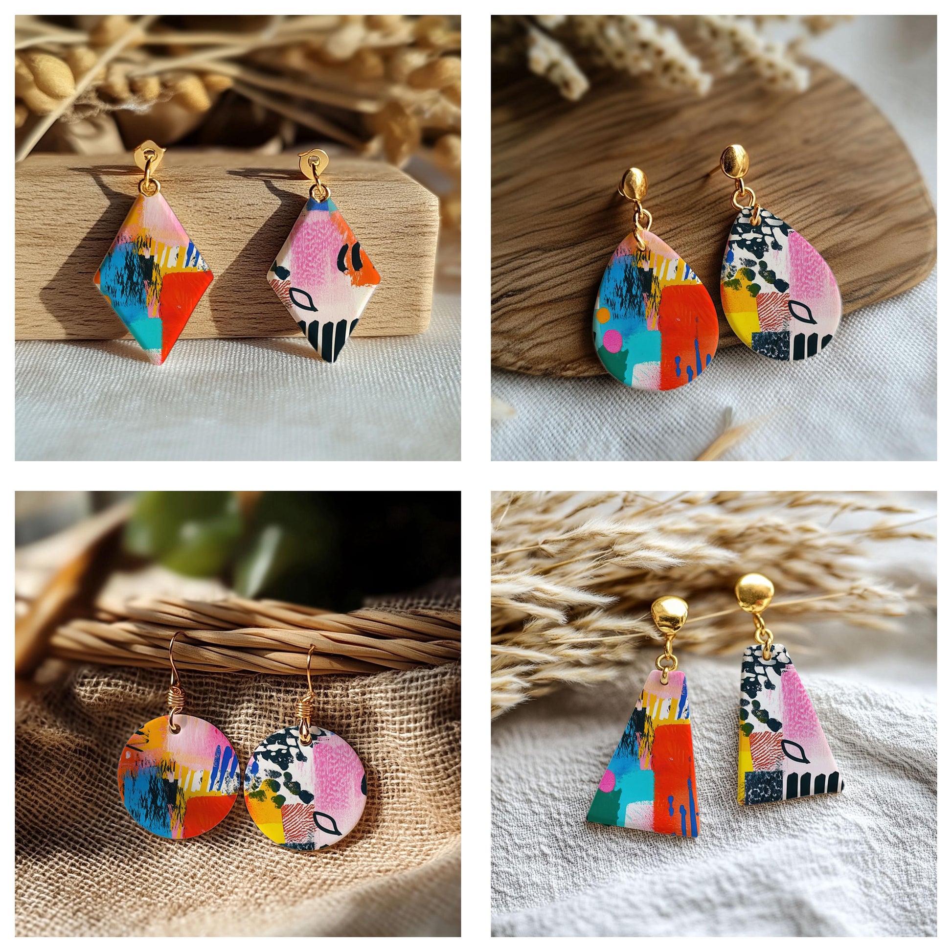 Colorful Collage Water soluble Transfer paper for polymer Clay Earring Making - 4x5.5 in #TP26-6