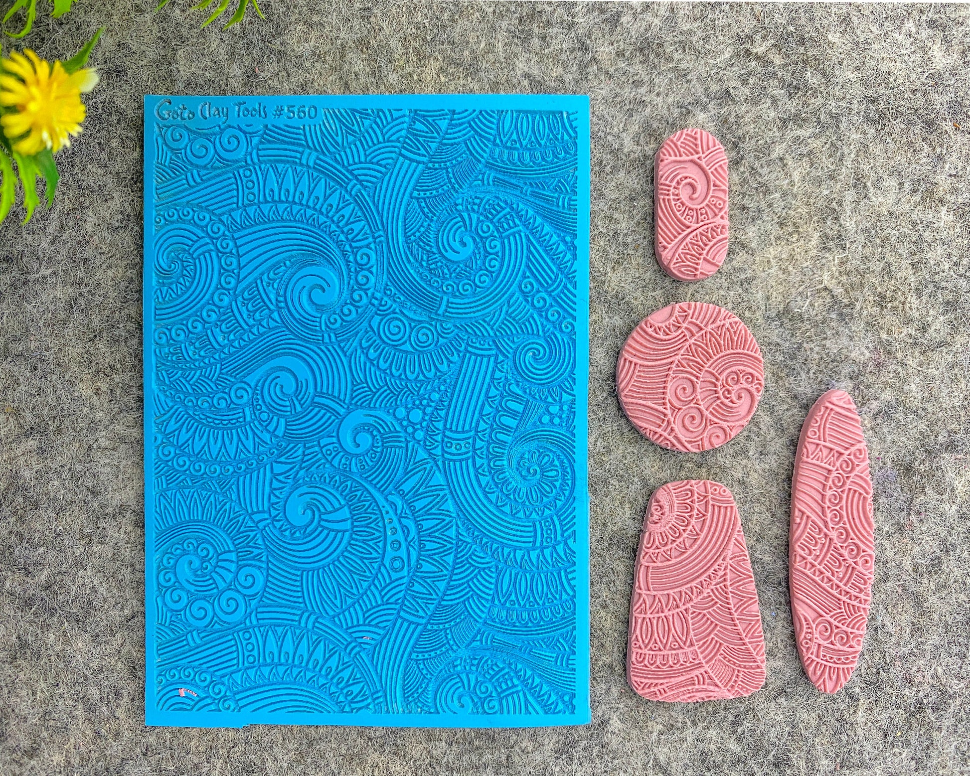 Doodle waves Texture mat for polymer clay, Polymer Clay Rubber Texture mat, Texture Tile mats, Rubber Texture Sheet #560