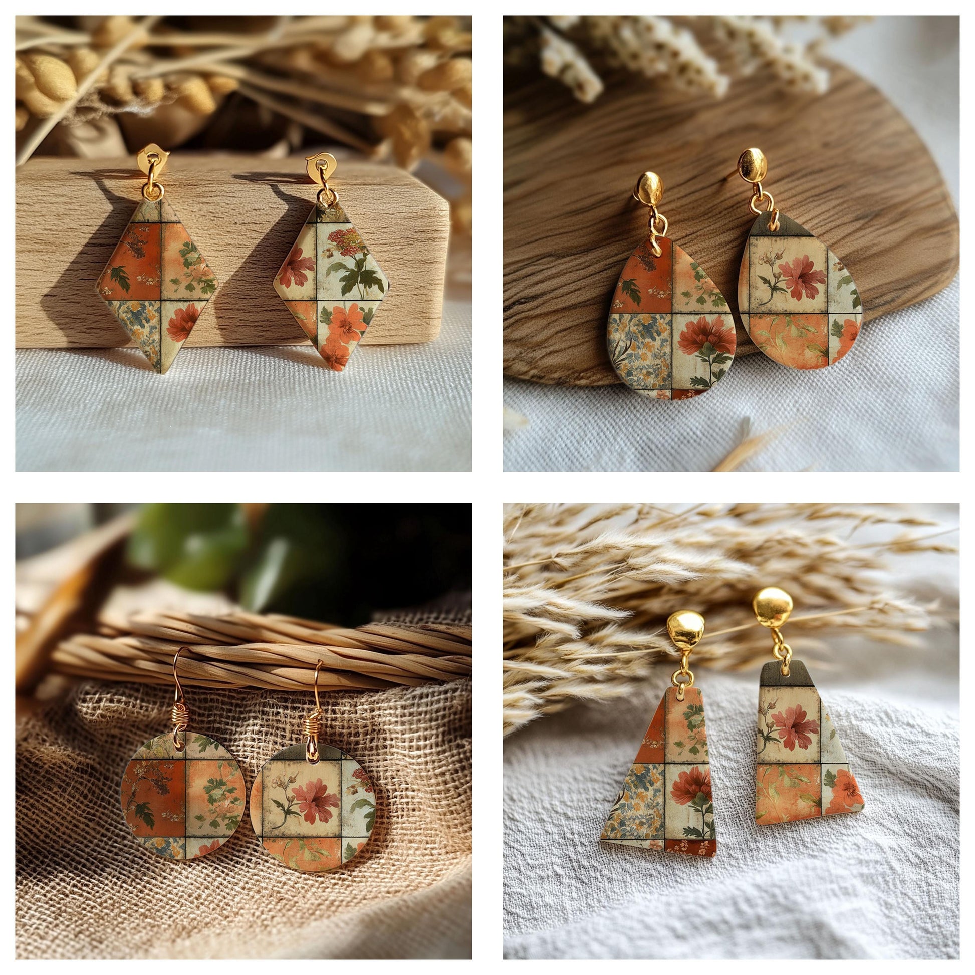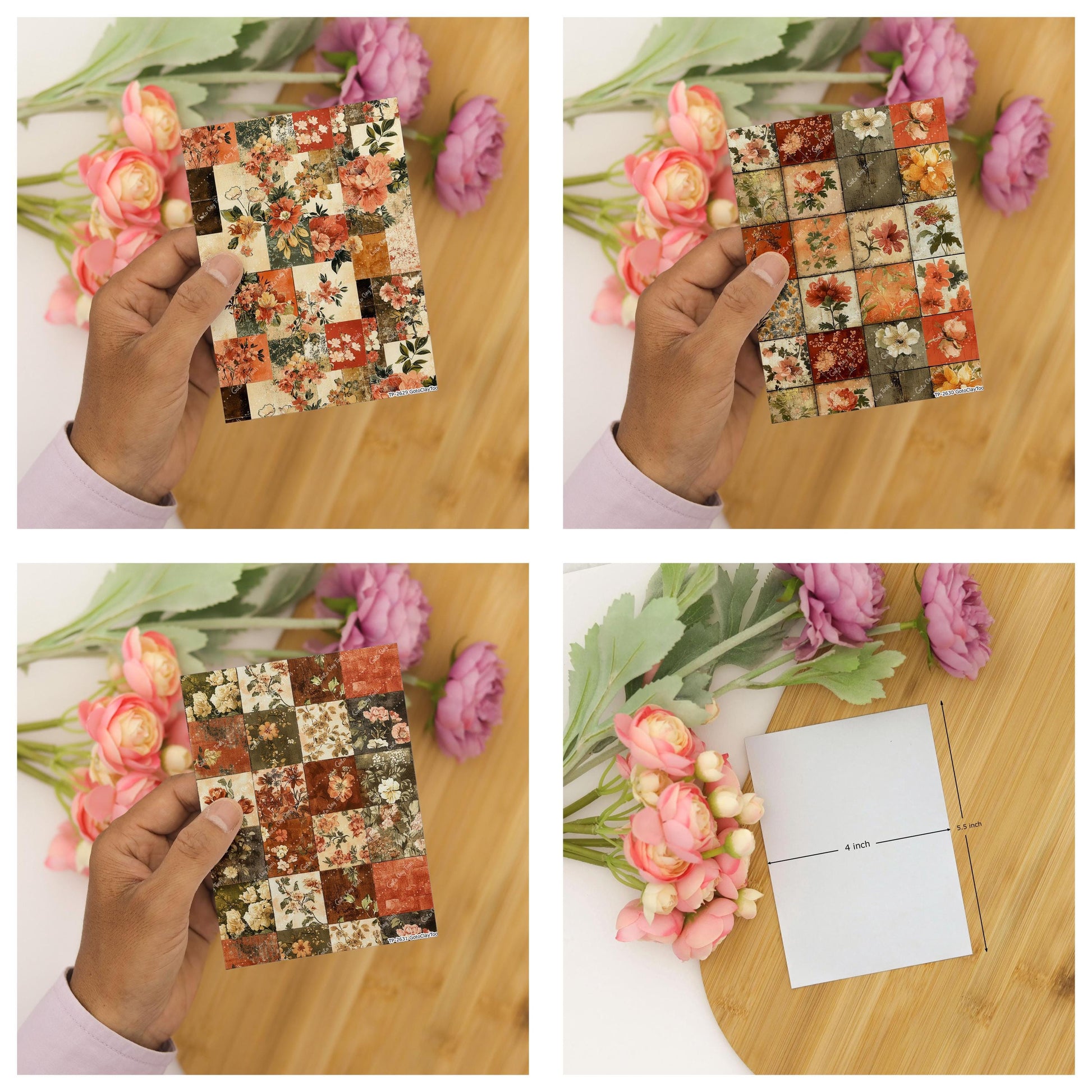 Floral Patches Transfer paper for polymer Clay Earring Making - Water Soluble Transfer Sheet 4x5.5 in #TP26-15
