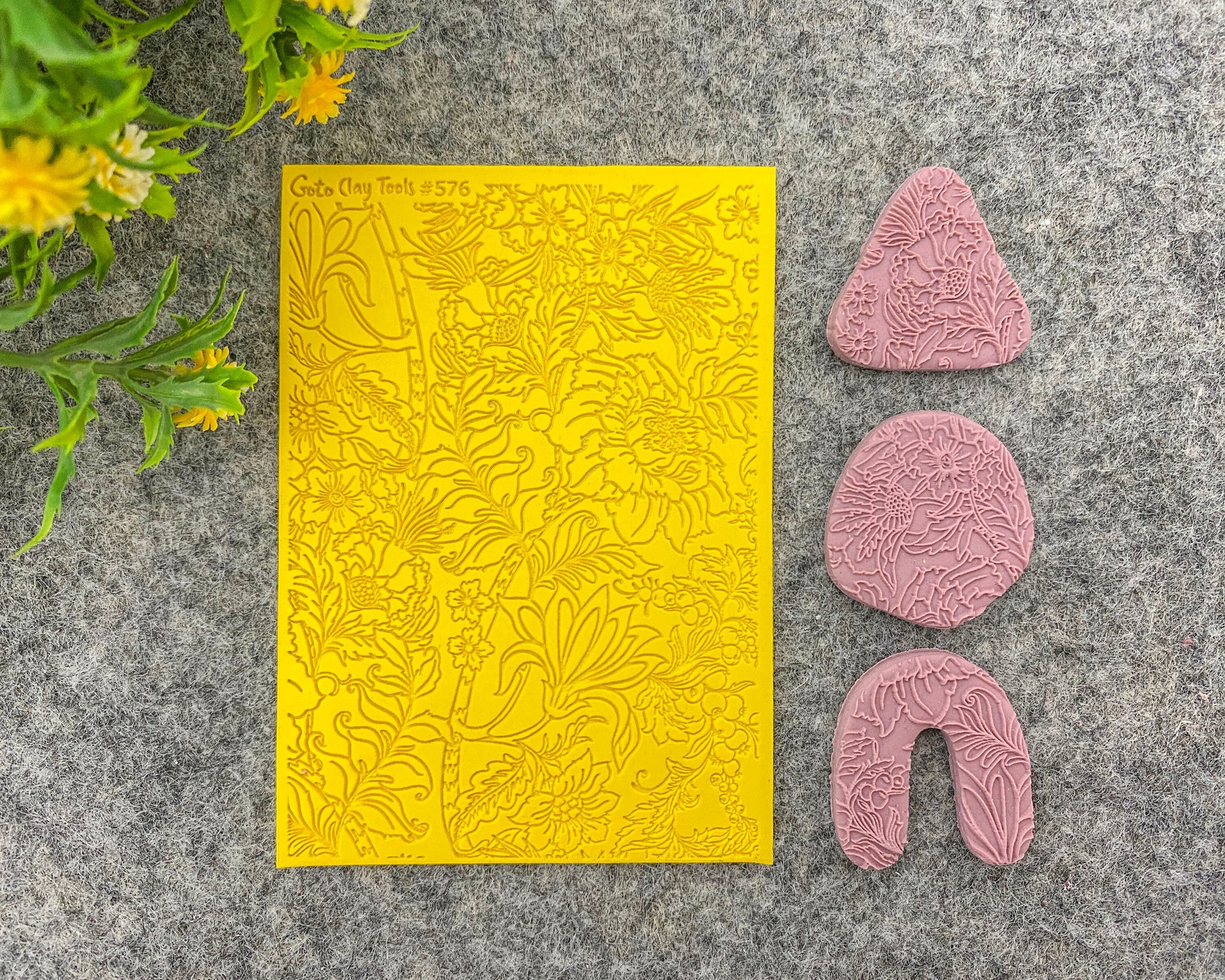 FLORAL Texture mat for polymer clay, Polymer Clay Rubber Texture mat, Texture Tile mats, Rubber Texture Sheet #576