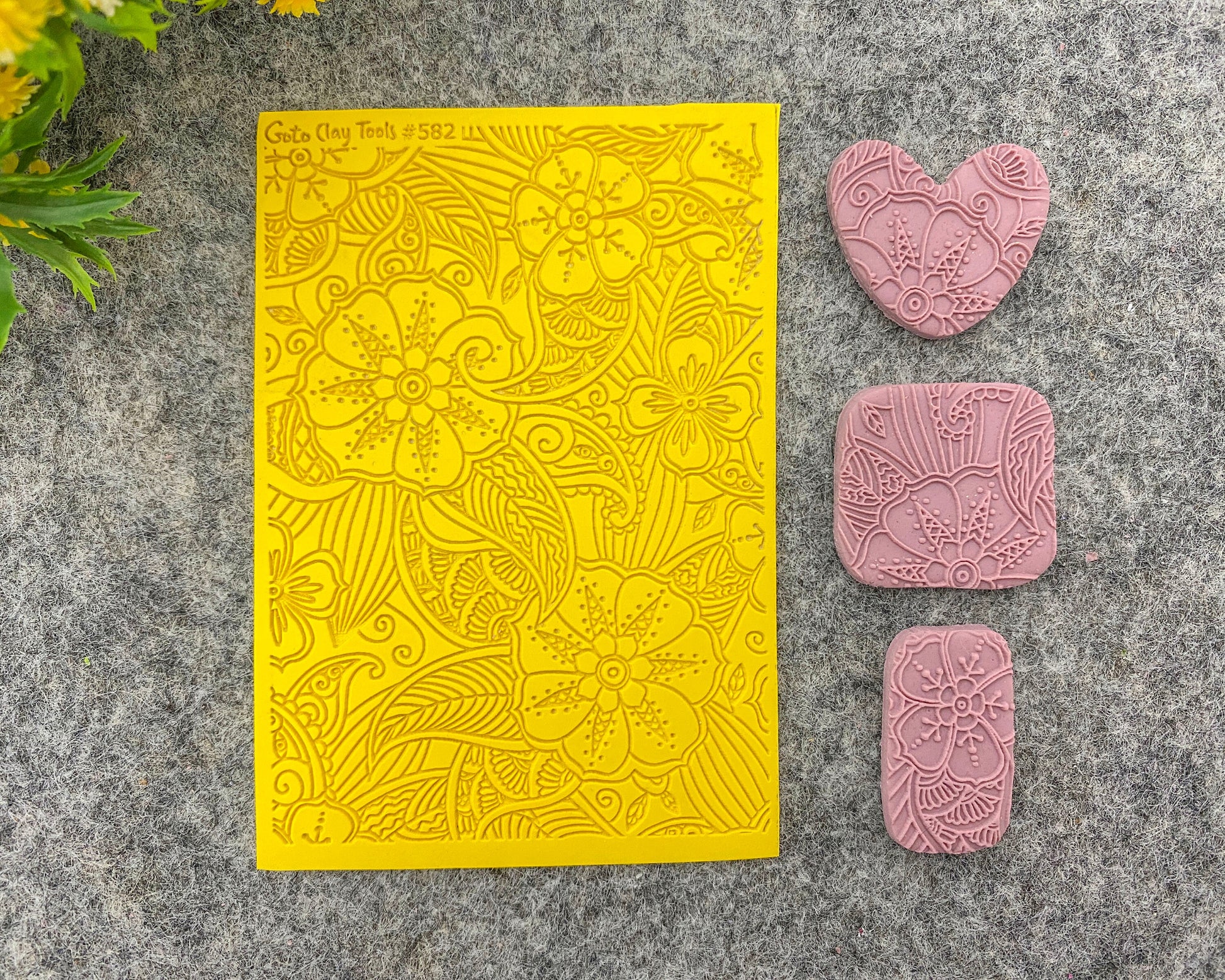 Henna Texture mat for polymer clay, Polymer Clay Rubber Texture mat, Texture Tile mats, Rubber Texture Sheet #582