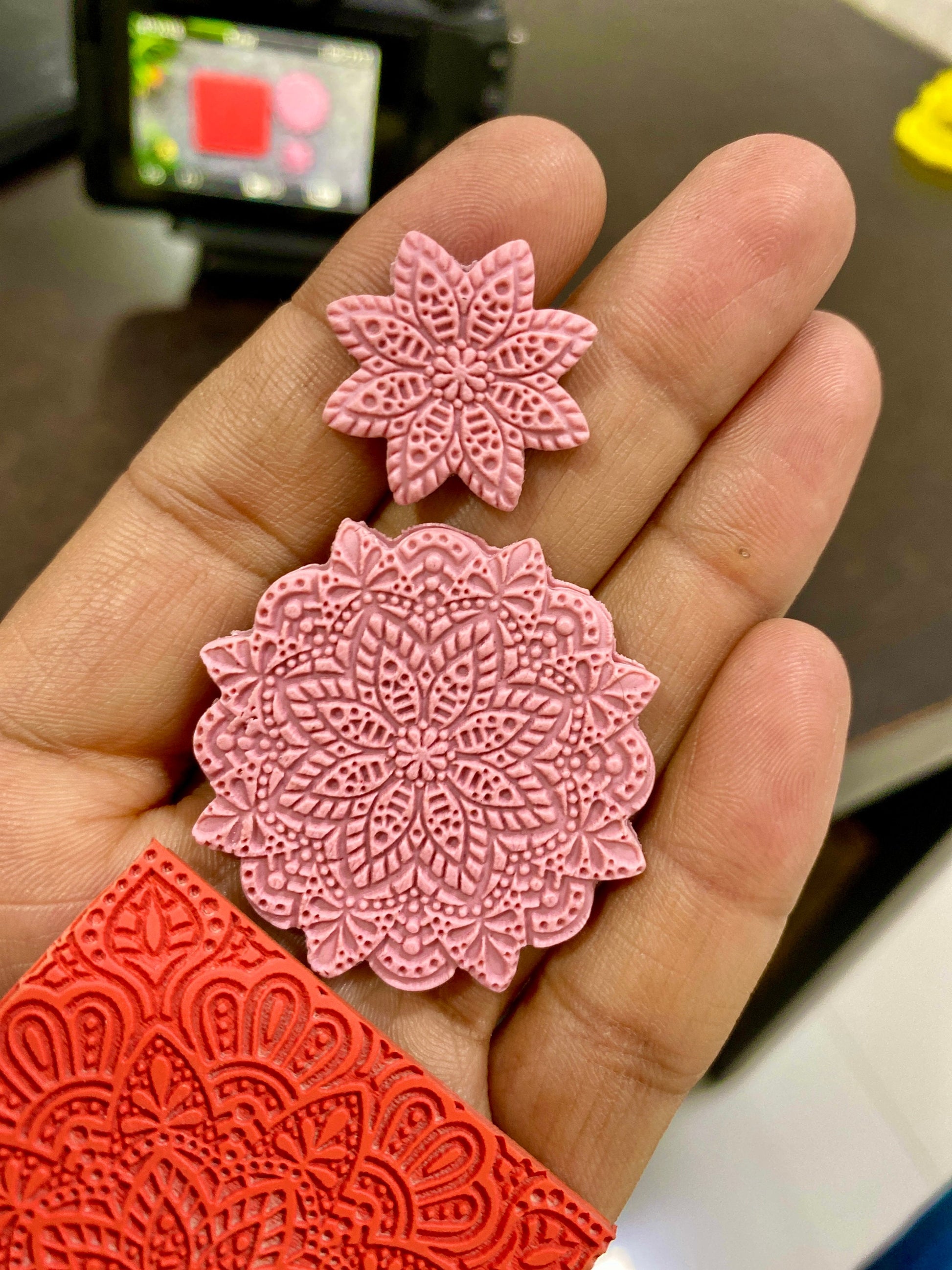 Mandala Texture mat for polymer clay with Cutter , Polymer Clay Rubber Texture mat, Texture Tile mats, Rubber Texture Sheet 50x50mm