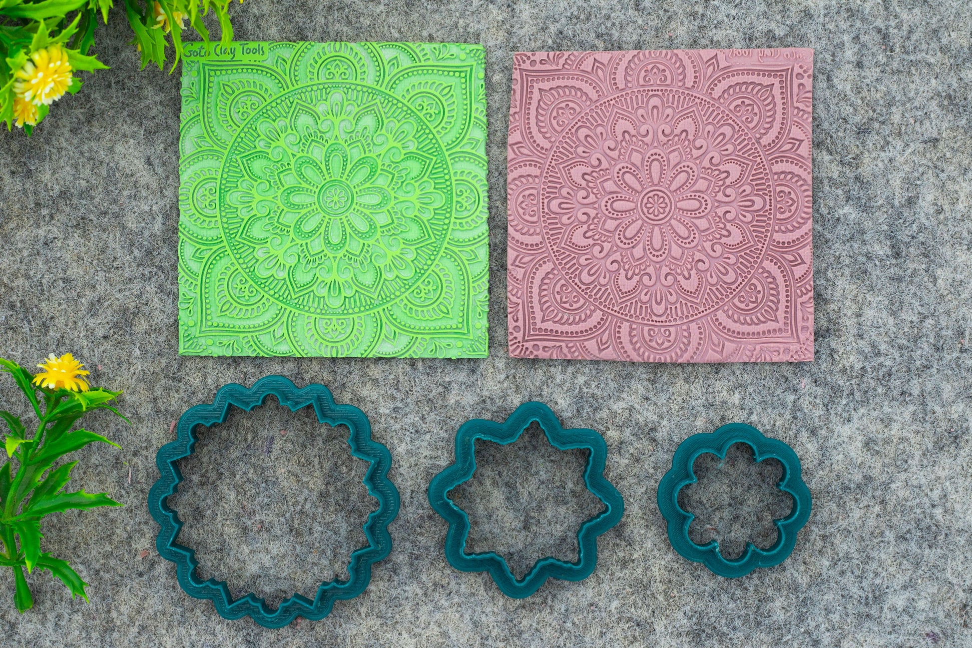 Mandala with Cutter Texture mat for polymer clay, Polymer Clay Rubber Texture mat, Texture Tile mats, Rubber Texture Sheet #M-4
