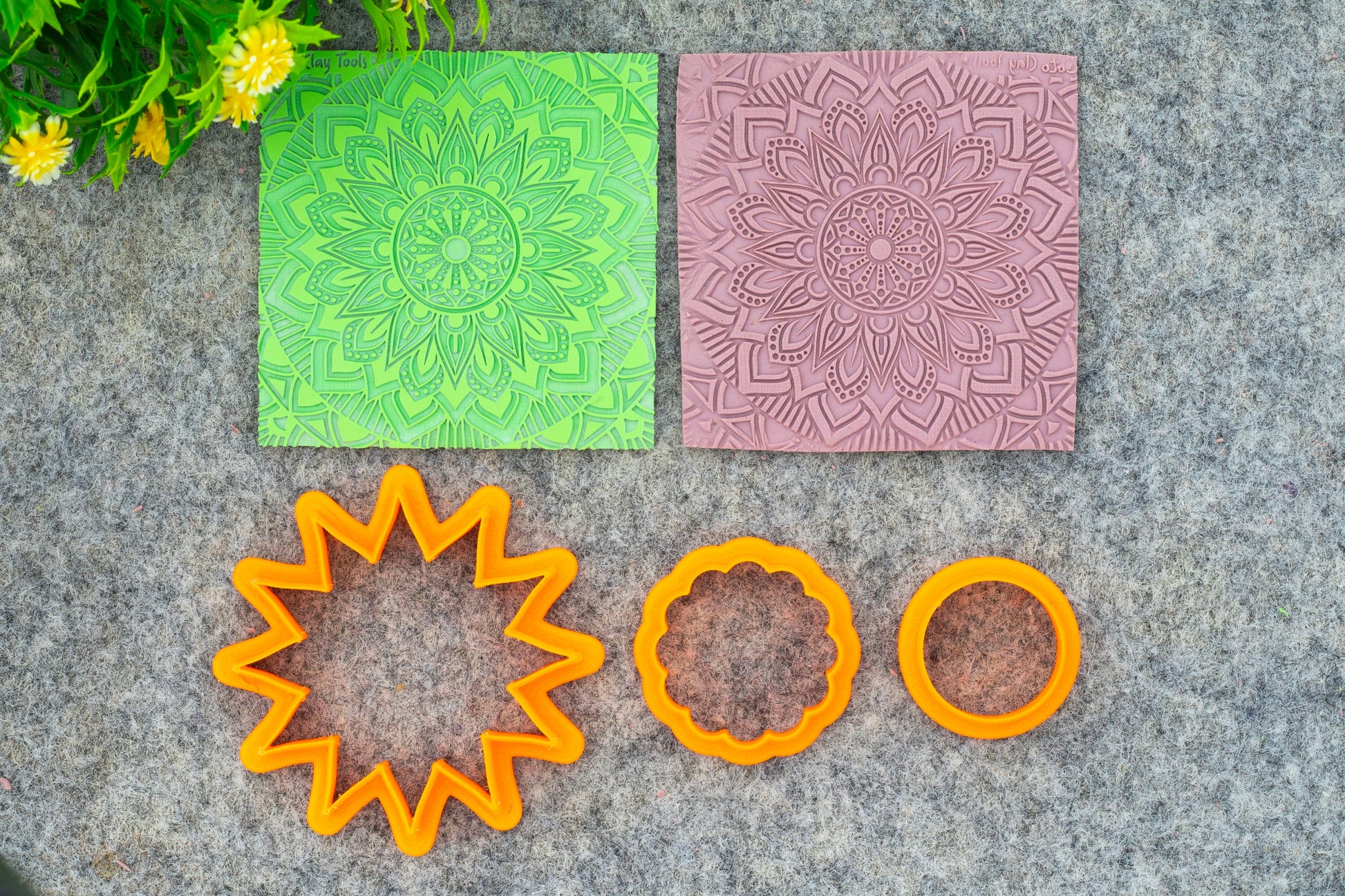 Mandala with Cutter Texture mat for polymer clay, Polymer Clay Rubber Texture mat, Texture Tile mats, Rubber Texture Sheet #M-6