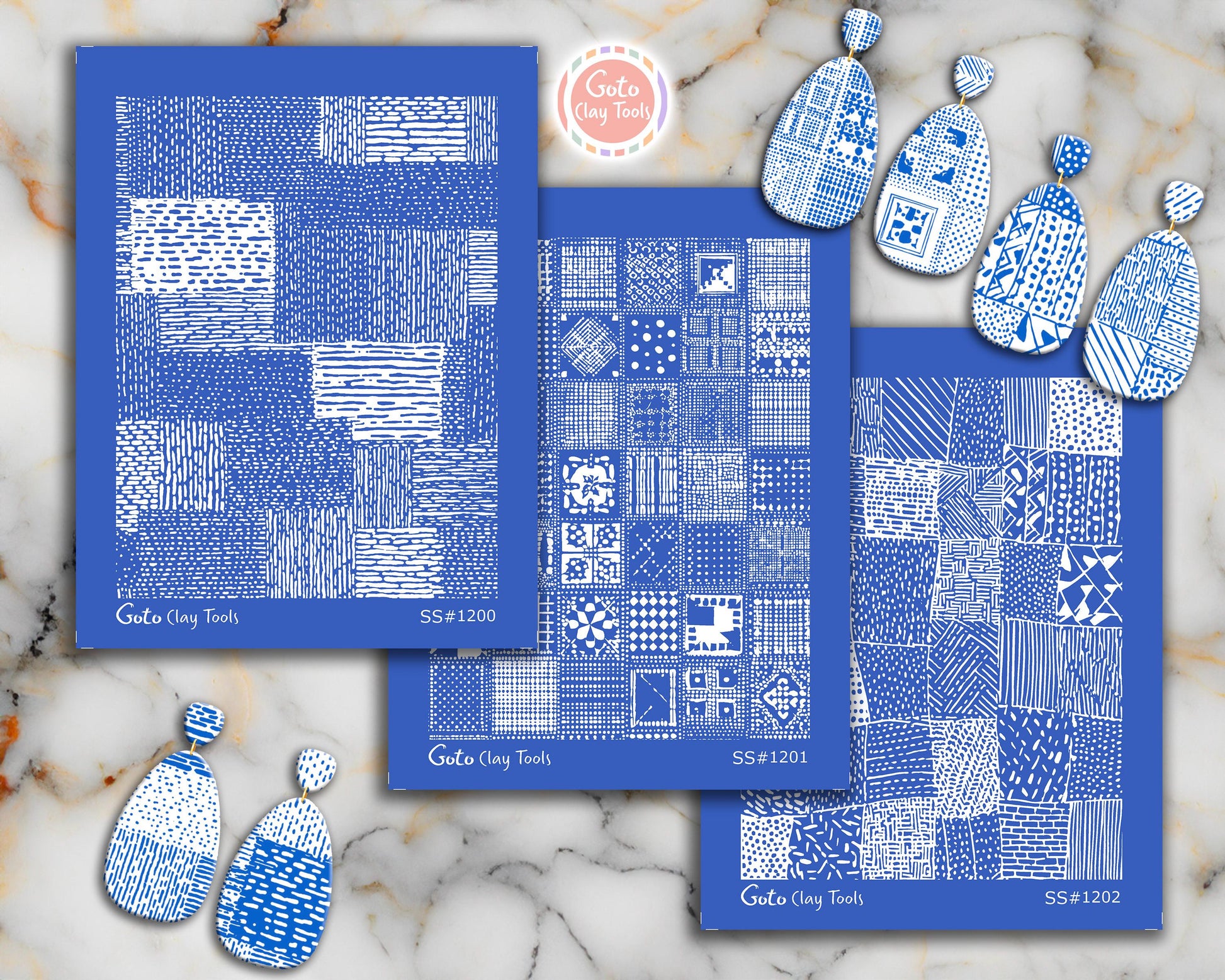 Patchwork Texture Silk Screens for Polymer Clay | Abstract Blocks & Pattern Sampler | 9.5 x 12.5 cm Printable #SS26-4