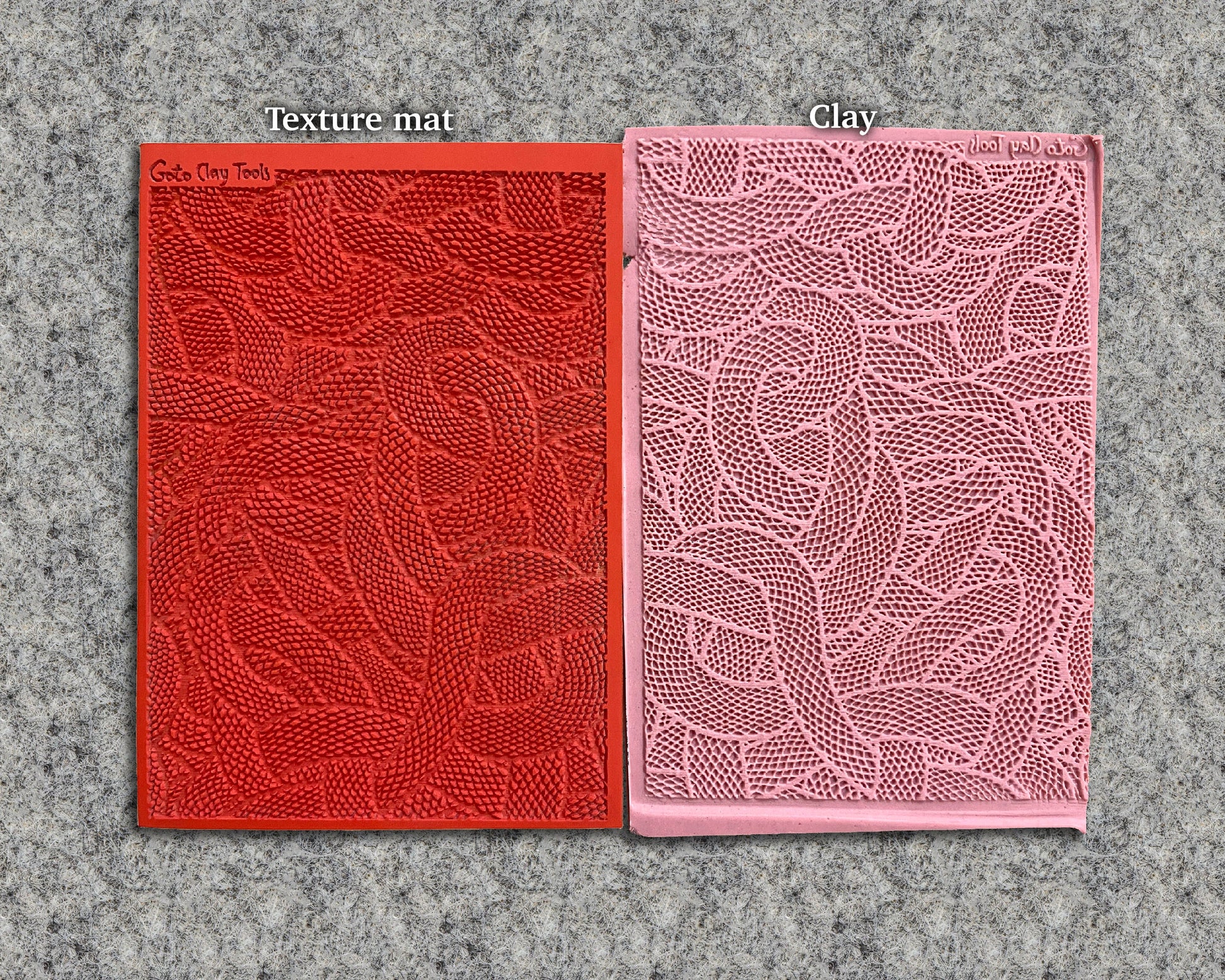 The texture is lifted up by pressing the texture mat, not pressed down in the clay.